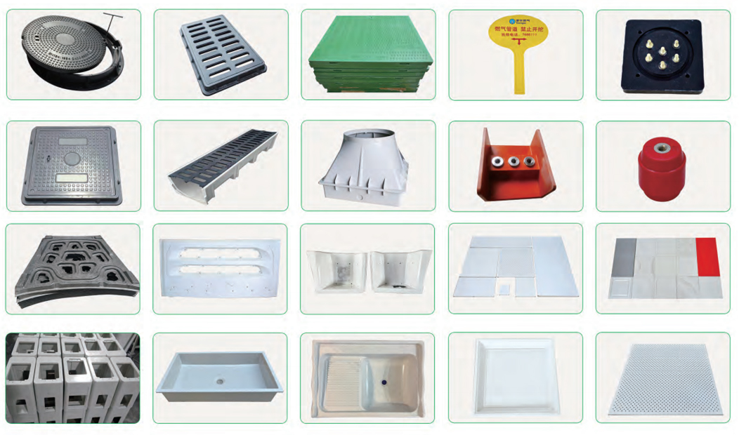 公司生產的復合材料主要有:聚酯SMC片材,環氧SMC片材,光感SMC片材;BMC團料,環氧BMC團料,酚醛 BMC團料。